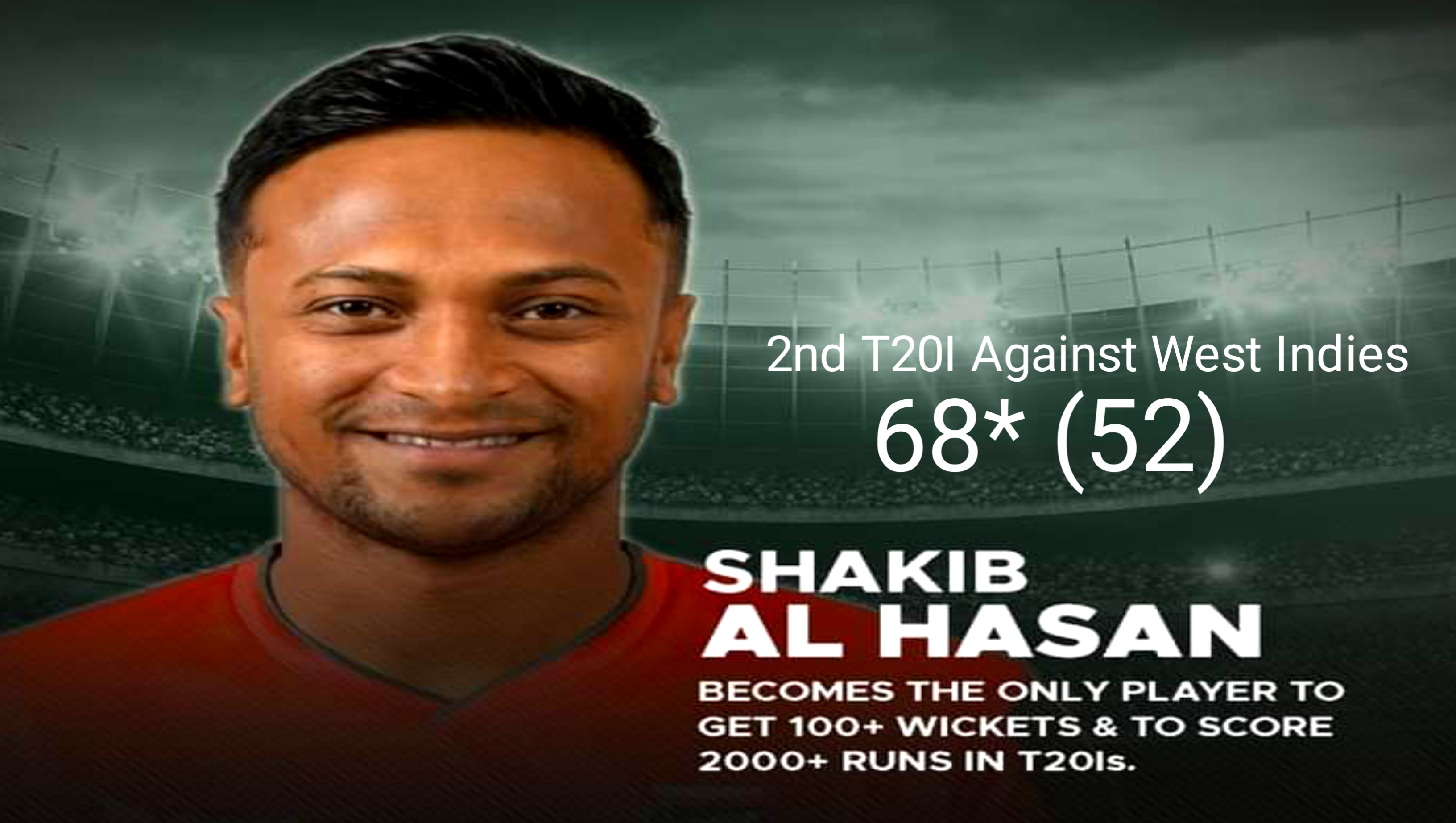 ২য় টি-টোয়েন্টিতে ওয়েস্ট ইন্ডিজের কাছে ৩৫ রানে হেরেছে বাংলাদেশ। টসে জিতে ব্যাটিং করতে নেমে ভালো শুরু পায় স্বাগতিক ওয়েস্ট ইন্ডিজ। ওপেনার ব্রেন্ডন কিং এর ৪৩ বলে ৫৭ রান এবং রভম্যান পাওয়েল এর ২৮ বলে অপরাজিত ৬১ রানের ঝড় ইনিংসে ৫ উইকেট হারিয়ে ১৯৩ রানে করে ওয়েস্ট ইন্ডিজ। জবাবে ব্যাটিং করতে নেমে নিয়মিত বিরতিতে উইকেট হারাতে থাকে বাংলাদেশ। তবে এক প্রান্ত আগলে রাখেন সাকিব অল হাসান। তার ব্যাট থেকে আসে ৫২ বলে অপরাজিত ৬৮ রানের ইনিংস। যার বর্তমান বিশ্বে টি-টোয়েন্টিতে ২০০০ রান ও ১০০ উইকেটের রেকর্ড গড়েন তিনি। সাকিব ছাড়া বলার মতো রান করতে পেরেছেন আফিফ তিনি করেন ২৭ বলে ৩৪ রান।